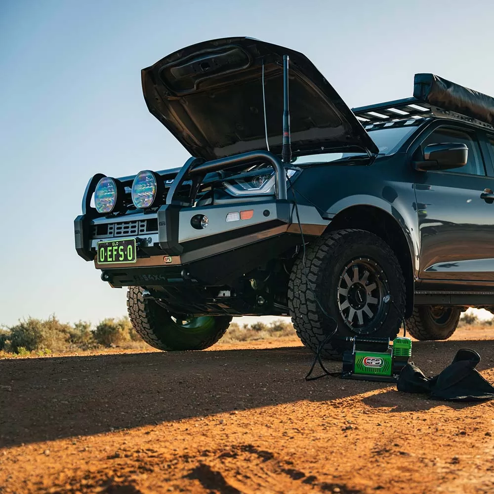 The EFS Stockman bullbars are specifically engineered in Australia to endure our challenging climate and terrain. Ensure the protection of both yourself, your passengers, and your 4WD by choosing the EFS Stockman Bullbar. Made from high-quality steel coated with EFS’s durable Endura Coat, these bullbars meet Australian Design Rules and airbag compliance standards. Features include winch readiness, integrated fog lights, precision welds, lower skid plates for added protection, and a design optimized for off-road capability. They offer robust construction, ADR compliance, and can be color matched to your vehicle by your local paint shops for customization (additional costs apply). Plus never get stranded again! Featuring two 3500kg rated recovery points, or a combined 7000kg with the equalizer strap, allowing for easy recovery when you need it most.