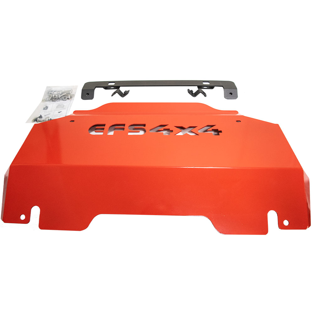 - Front-under-body plate that bolts in place of the vehicle’s factory under-tray guard – no major modification required.